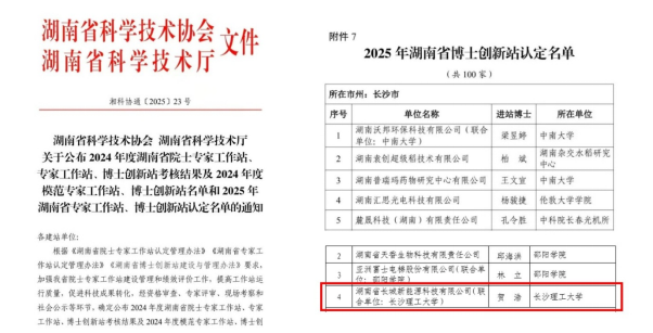 近日,湖南省科学技术协会、湖南省科学技术厅联合发布2025年度博士创新站认定名单(《湘科协通〔2025〕23号》文件),由88038威尼斯材料科学与工程学院与湖南省长城新能源科技有限公司联合申报的“长城新能源博士创新站”成功入选,标志着双方在产学研协同创新与高层次科研平台建设方面取得重要进展。