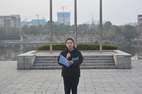 仪式过后,学生代表贺鼎在国旗下发言,她讲述了自己的军旅生活以及对党和人民的热爱与坚定信念。她提到,在进行入党谈话时,当被问及“你做好随时为党和人民牺牲一切的这个准备了吗?”这个问题的时候,她回答道:“习近平总书记曾说,关键时刻冲得上去、危难关头豁得出来,才是真正的共产党人。我想这也正是我的答案。‘随时准备为党和人民牺牲一切’这是一句承诺更是一项使命,就像军人誓词里所讲的‘绝不叛离军队,誓死保卫祖国’一样。”