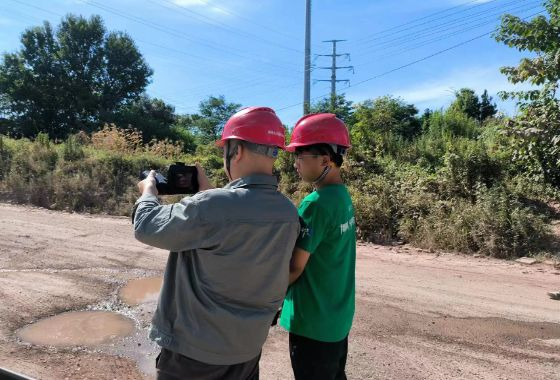 7月23日上午,输电班班长曾程亮带领实践队两名队员前往长沙县榔梨镇进行杆塔红外测温作业。在到达指定地点后,工作人员按照上级要求,在指定编号杆塔使用红外摄像机进行测温。队员们在操作手的指导下,学习了热成像机主界面的基本内容,了解了基本原理和杆塔出现故障的条件。曾程亮指出,红外测温原理就是利用热成像系统,通过分析相机中不同图层的颜色,导出各区域分别对应的温度。此外,通过实地勘察,实践队员们也了解了杆塔中耐张杆的构造及其应用,即在线路终点或转弯的地方,会在很长的直线线路中间用到,让电缆不能过紧也不能过松。