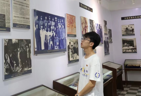 罗盛教的事迹生动诠释了爱国主义与国际主义的统一。抵达纪念馆后,实践队成员在讲解员的引导下,有序参观了各个展厅。三个展厅再现了罗盛教的早年生活、成长经历、搭救落水男孩的英勇事迹以及其推动中朝友谊的发展的过程。展厅中还有罗盛教的一些个人物品、书信和日记,这些珍贵的文物如同一扇窗,让队员们得以窥见英雄内心深处的世界和思想情感。这一活动不仅拓宽了实践队成员的国际视野,也让他们对爱国主义与国际主义的统一有了更加深刻的理解。