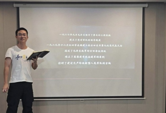 为庆祝中国人民解放军建军96周年,深入学习贯彻习近平新时代中国特色社会主义思想,传承红色基因,赓续红色血脉,长理电气赴娄底客户服务中心实践队于8月1日组织全体队员晚七点在欢麓丽晨v酒店六楼会议室集体观看红色电影《建军大业》。