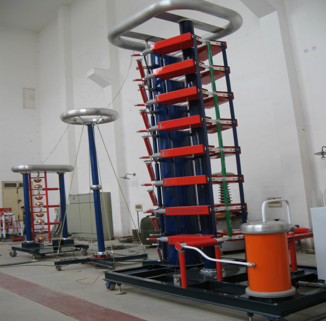 该设备由1200KV冲击电压发生本体、1200KV弱阻尼电容分压器、800KV多球隙截断装置、CCK-2511型控制系统及Hias1214测控一体化系统构成。