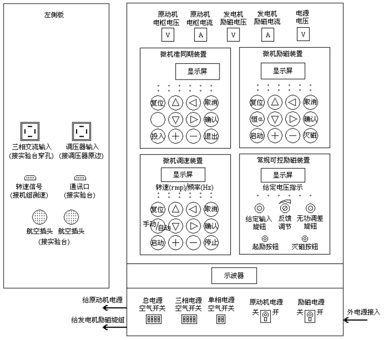 为使学生适应当前能源发展的需要,掌握分布式发电系统、模拟风力并网发电、光伏并网发电等基本结构与工作原理,发电电源考虑了风力发电、光伏发电、超级电容发电等多种电源形式,为开展新型分布式发电电源的电气控制、保护及电力电子等方面的实验与研究提供了相应的平台。为了使电气工程及其自动化专业的学生对整个电力系统有一个完整、全面的认识,使学生熟悉并掌握电力系统结构及运行特点,系统中设置了几个典型的变电站、配电站以及多条输配电线路,且组成的电力系统结构形式、变电站主接线运行方式及输配线路的参数可灵活改变。为了使学生了解不同负荷对系统的影响以及开展负荷调配控制方面的实验,系统中设置了多种负荷形式,包括静止负荷与旋转负荷。该综合实验室所配置的先进和完善的电气二次设备及监控系统与现场运行设备完全等同,包括监控系统、各种保护及各种电气自动装置。保护及监控系统采用最流行的分散分布式结构,使整个系统结构紧凑,电路简洁清晰,连接电缆大大减少。