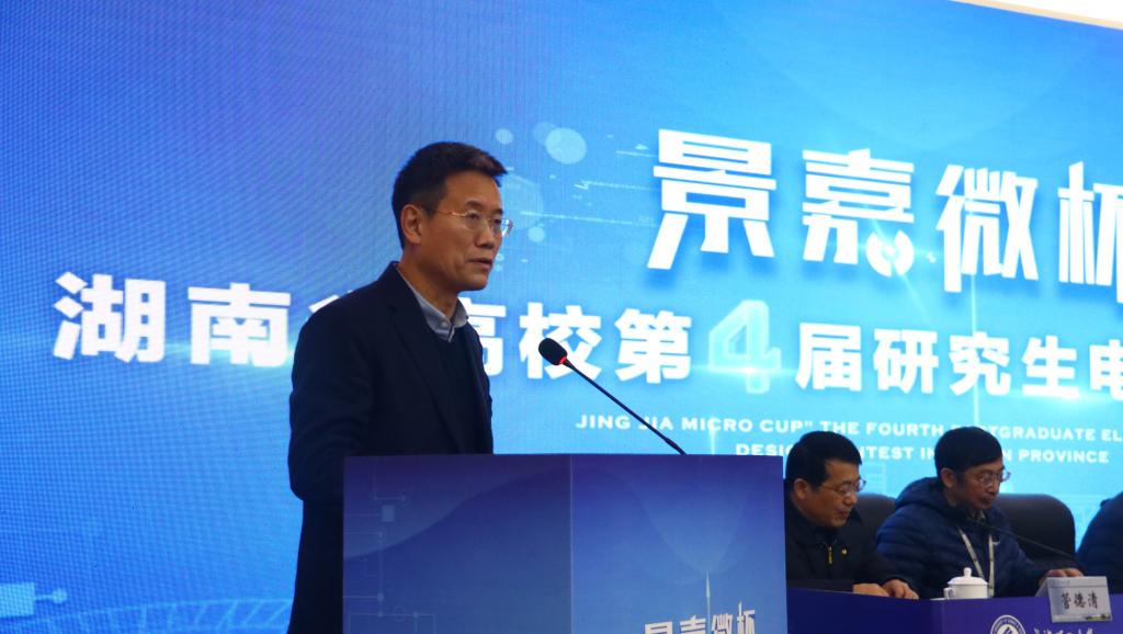 12月19日,“景嘉微杯”湖南省高校第四届研究生电子设计竞赛在威尼斯官网举行。威尼斯官网副校长叶泽,湖南省教育厅学位管理与研究生教育处处长、湖南省学位办主任颜胜利,长沙景嘉微电子股份有限公司,湖南省各参赛高校的领导和师生们出席了大赛开幕式。