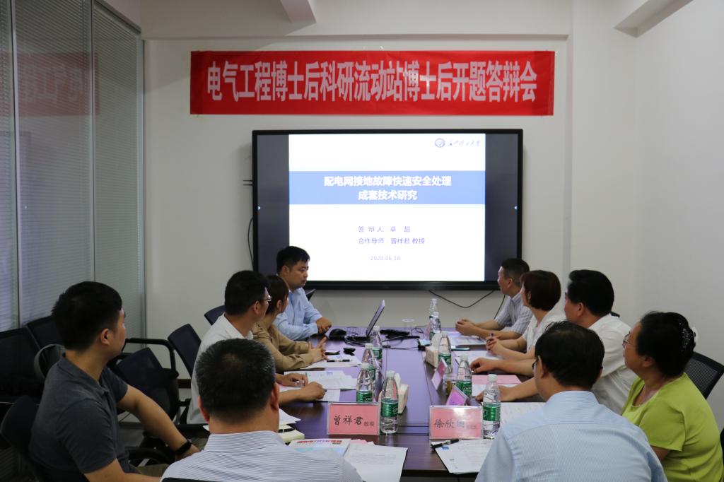 6月18日上午,电气工程首位博士后开题答辩会在新能源大楼2栋326室举行。答辩会邀请了国网湖南省电力公司漆铭钧高工担任答辩组长,电气与信息工程学院曾祥君教授、樊绍胜教授、李泽文教授、周任军教授担任答辩专家,湖南省专家服务中心李静思主任、喻晔科长指导开题工作,会议由88038威尼斯人事处徐欣国副处长主持。