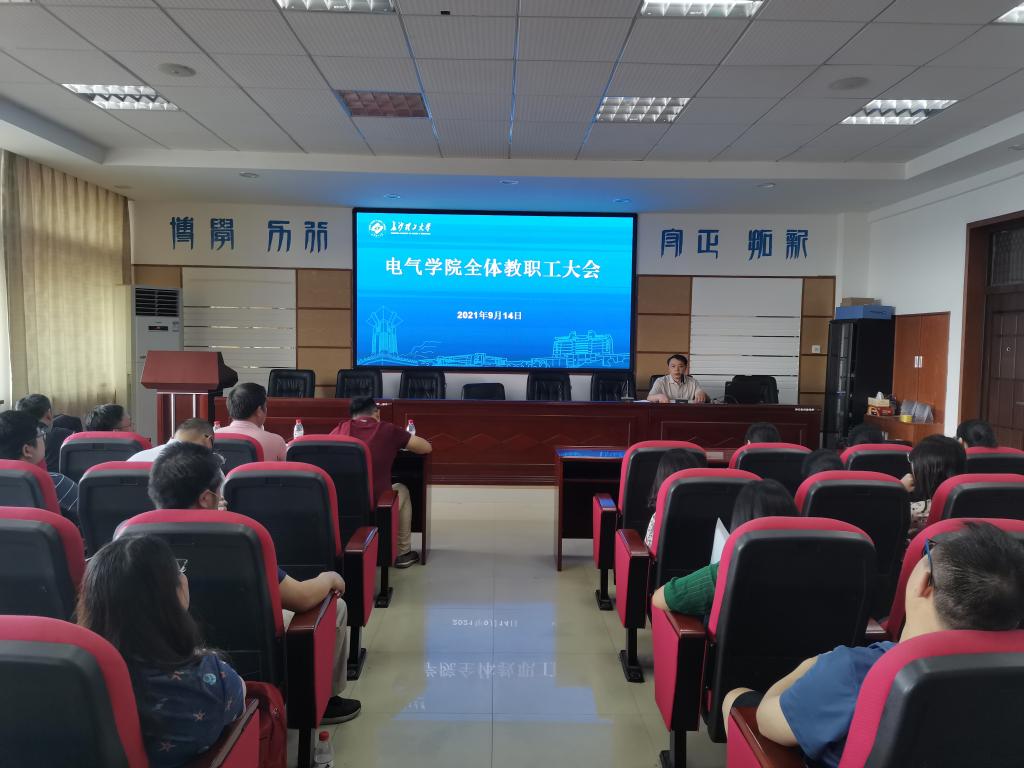 9月14日下午,学院在工一B503召开2021年度秋季学期第一次全体教职工大会,学习传达学校新学期第一次党政工作(扩大)会议精神,对本学期工作进行部署和动员。会议由院党委书记符慧林主持,全体教职工参加。