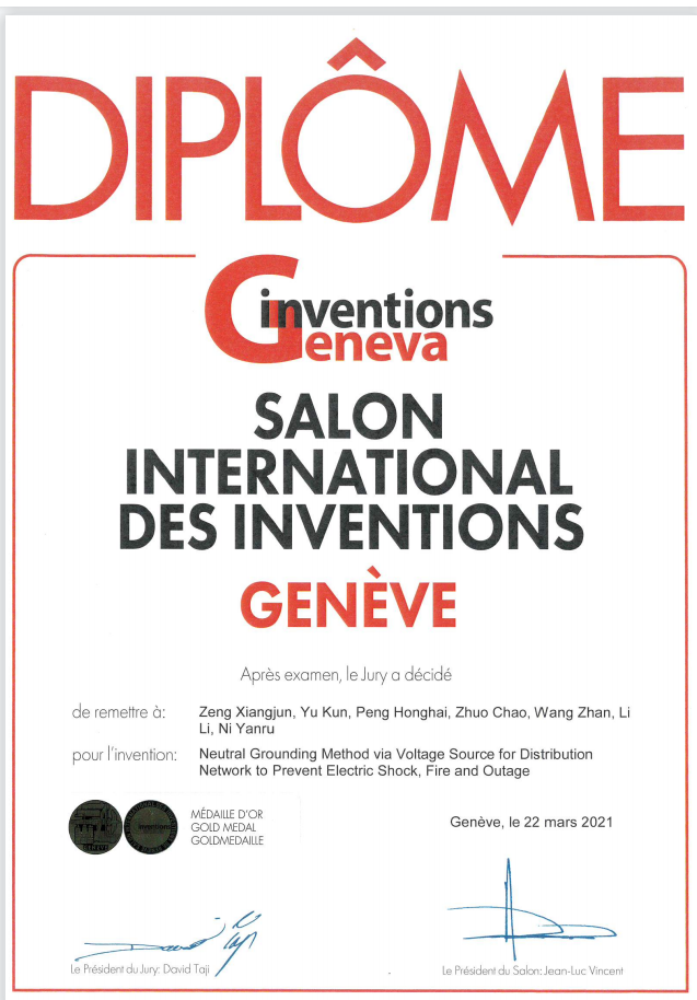 2021年第48届日内瓦国际发明展(International Exhibition of Inventions of Geneva)于当地时间3月18-25日通过线上开展评审,我院参赛的“预防配电网触电、起火和停电的中性点经电压源接地方式”项目与“电网非接触式行波传感器与故障精确定位系统”项目,双双斩获展会金奖,是我院首次获得该奖项。