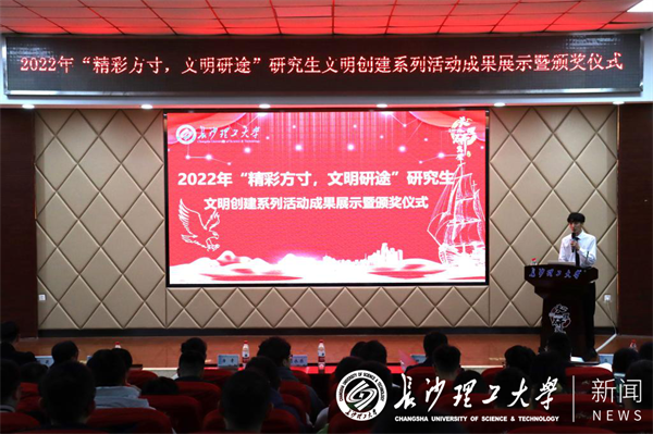 为深入学习贯彻党的二十大精神,推进学校精神文明建设,展示研究生文明创建系列活动成果,11月16日下午,“精彩方寸,文明沿途”88038威尼斯首届研究生文明创建系列活动成果展示暨颁奖仪式在云塘校区研究生学术报告厅举行。副校长胡永乐出席活动并致辞。研究生院(研工部)和各学院负责人、辅导员代表及200余名研究生参加。