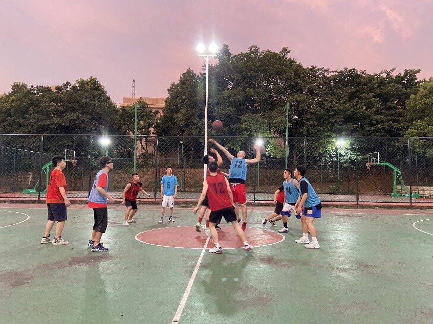 为增强实践团队凝聚力和战斗力,国际工学院实践团与国网湖南省电力有限公司超高压变电公司新入职员工代表开展了一场篮球友谊赛。比赛开始后,特高压队员以流畅的进攻迅速占领场上优势,直逼篮板,率先拉开比分。随着比赛进行,实践团队员也不甘示弱,很快追上了比分。通过此次友谊赛,双方队员都在过程中收获了深厚的友谊。