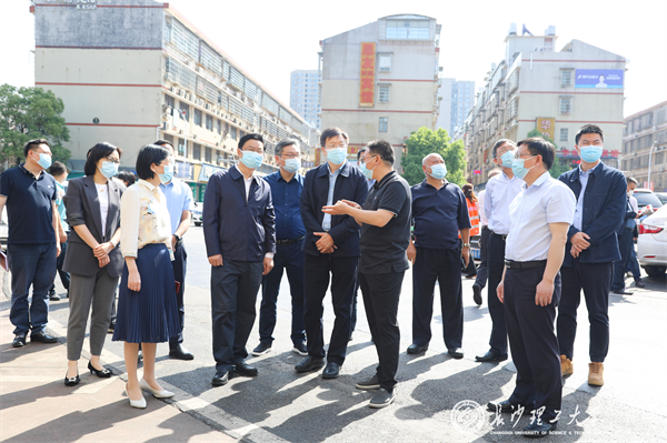 5月4日上午9点,校党委书记付宏渊、校党委副书记刘建民、副校长谈传生,天心区委书记吴新伟、天心经开区党工委书记曾红鹰等领导在相关职能部门负责人陪同下,对云塘校区周边开展安全大检查,全面摸排校园周边地区建筑物安全隐患,重点检查经营性居民自建房及周边商户的经营安全及消防安全问题。