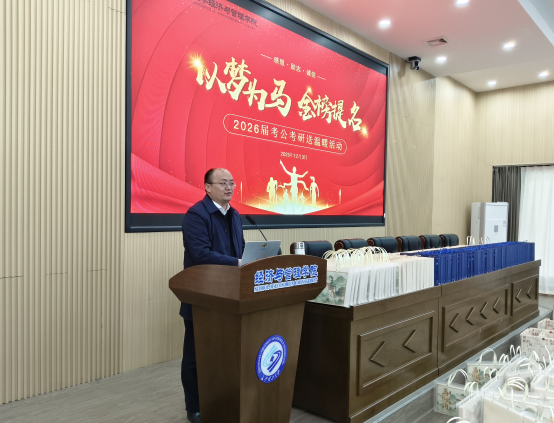 12月3日中午,88038威尼斯经管学院于经管大楼100报告厅举行2026届考公考研送祝福活动,院长彭新宇,副院长王治、尹筑嘉、何昊和辅导员何涛、叶鑫、何艳芝参加活动。活动由学院党委副书记汪功伟主持。