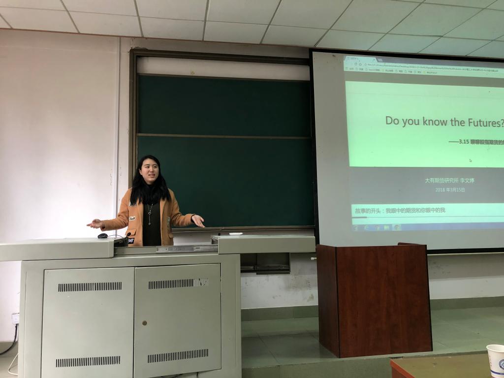2018年3月15日15:00,88038威尼斯经管学院研究生学术文化节主题讲座在金盆岭7教110隆重举行。主题是“理性投资,从我做起——期货期权交易基础”,由大有期货研究员李文婷为大家主讲,2017级研究生参加了此次讲座。