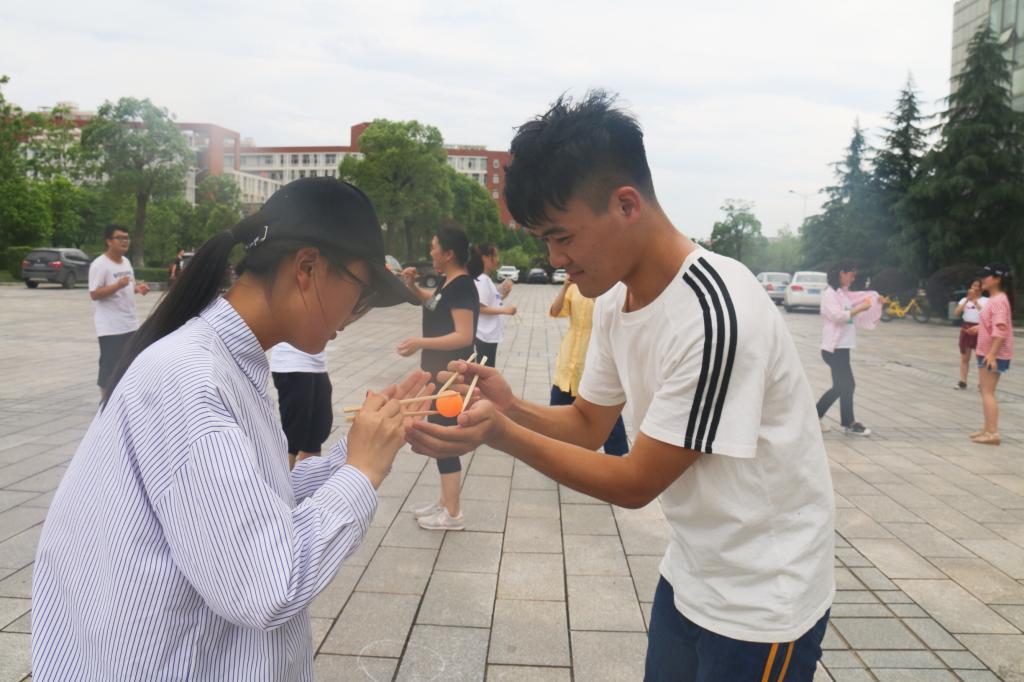 活动伊始,涂书记对本次活动做了积极动员,同时也希望更多同学能走出寝室,多参与户外活动。本次活动由参赛选手自行组队,共八组比赛选手,各组需进行四项团队活动,总分最高者胜出。比赛在“年少轻狂的我·就不听指挥”的热身活动中拉开序幕。第一项比赛活动是“团结奋进的我·搭桥过河”,每支队伍领取固定数量纸板,用纸板搭建道路到达终点,途中参赛者的脚不能离开纸板。随着一声“开始”,每队队员争先前进,为了赢取胜利,各组使用浑身解数,男生步子迈得大,女生们为了不影响团队作战,直接脱鞋参与。比赛过程中,大家手挽手,心连心,朝着终点站前进。紧接着是“活泼健康的我·跳大绳”,两人甩绳、四人跳绳,跳绳数多者胜。四人跳绳,频率一致是关键,但跳绳从来不单单是跳绳者的事情,甩绳者甩绳的方式和数跳绳数都能给人带来足够的安全感,团队一心,方能破敌。活动三则是“小心翼翼的我·筷子夹乒乓球”,小球在队员之间用筷子传递到终点。大家摒住呼吸,用筷子夹着乒乓球,小心翼翼地传递给自己的队员,每一次成功地传球,都是一次胜利的喜悦,每一次终点的到达,是一阵欢呼雀跃的欢腾。比赛最后一项“眼疾手快的我·你扔我接”,这项活动考验队员之间的默契程度,有人扔球、有人接球、有人捡球,一个好的循环便是一个好的团队。比赛在一片欢声笑语中结束了,最后,大家纷纷上台分享感受,庄老师也对本次活动做了总结。