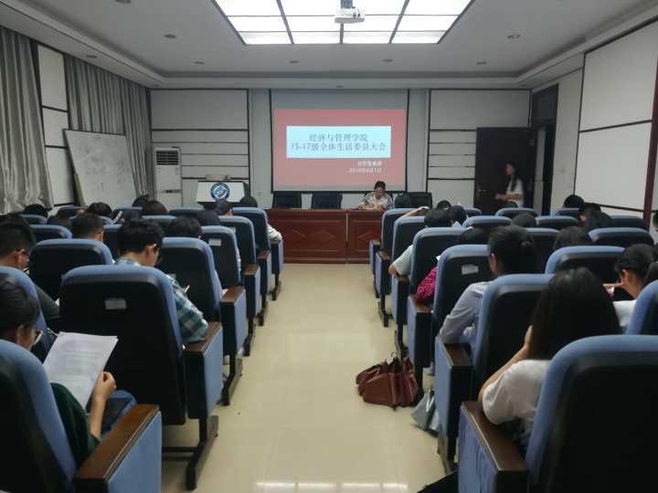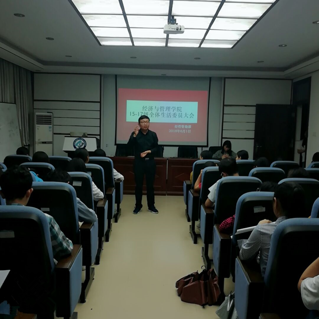 2018年6月1日晚,经管学院资助部在文科楼召开了全体生活委员工作培训大会,学院党委副书记涂道勇,资助辅导员肖翠及全体资助部成员参加会议。