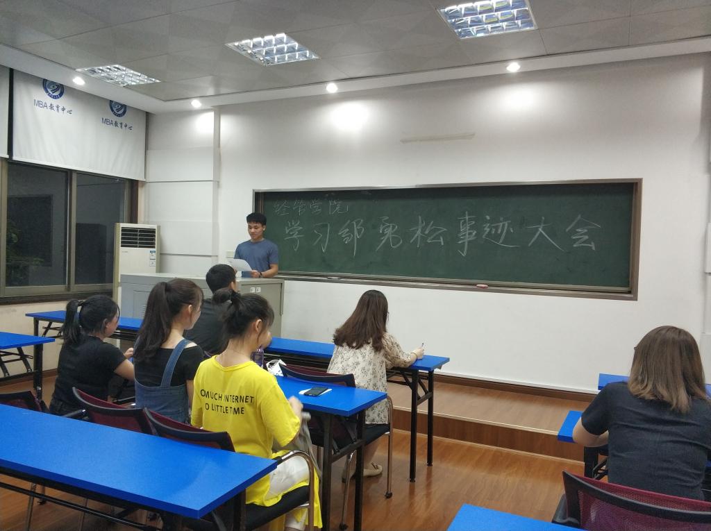 为大力宣传和弘扬邹勇松同学不惧艰难、自强不息、奉献社会的可贵品质,充分发挥先进典型的示范带动作用,经管学院组织研究生干部和党总支分别开展了学习邹勇松同学的先进事迹的活动。