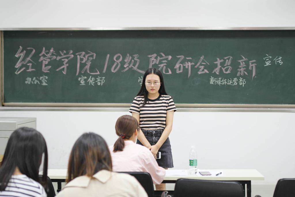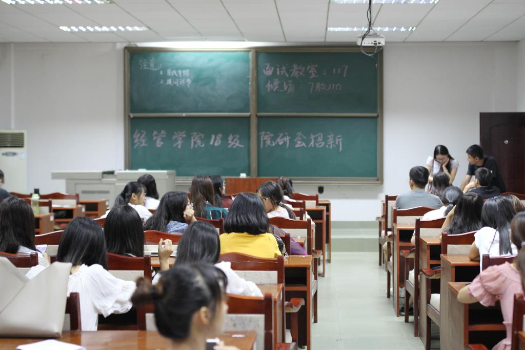 为了进一步顺利推进我院研究生的工作,更好的服务于同学,经管学院于2018年9月11日下午,在金盆岭校区七教110举行了2018级研究生会和党总支部的招新工作。经管学院2017级研究生会和党总支所有成员以及2018级面试新生参加了本次招新活动。