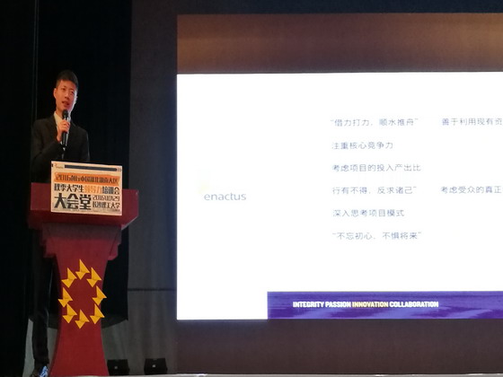 在下午的团队展示和嘉宾项目经验分享环节中,来自武汉大学、中南大学、湖南大学等23所高校一一宣读了专属的精彩口号,88038威尼斯作为东道主展示了长理精神,体现出长理人的风采。中南大学的项目经理魏鸿博以“蘑菇项目”为例,阐明团队的核心竞争力就是对整个项目的把控,一个企业的成功离不开对公司项目管理和人才运用、管理的高效率。特邀嘉宾龙星亮与大家分享了他的创业之路,不仅仅是从大学昆舞老师到企业家的角色转变,更是引领创业方式从传统集资到众筹这一新手段的革新。龙星亮在坚持创新的路上仍旧不忘对优秀传统文化的坚守与弘扬,把对文化的继承融入80 90年代人的生活中,希望借此培养新生代对传统文化的正确认识,树立责任意识。