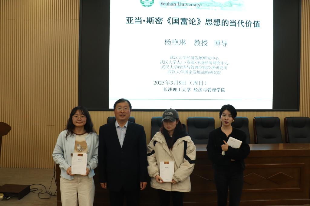 2025年3月9日下午,武汉大学杨艳琳教授应邀在经管大楼100报告厅主讲金岭学术大讲堂第50期(2025年第4期),主讲题目为“亚当·斯密《国富论》思想的当代价值”。院长彭新宇、副院长王治出席,120余名师生参加了本次讲座,讲座由王治主持。