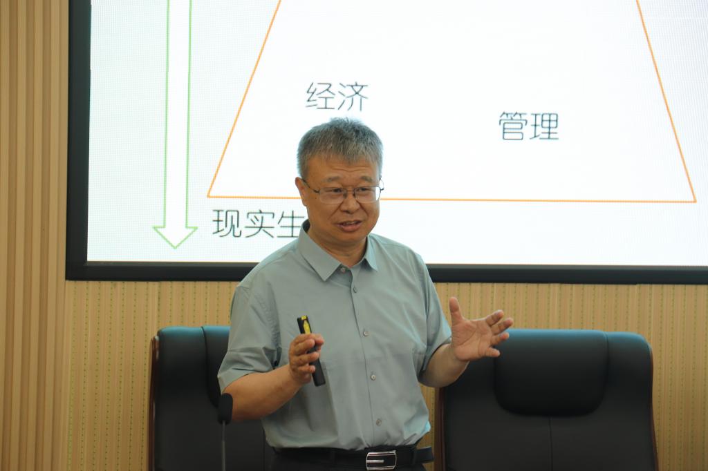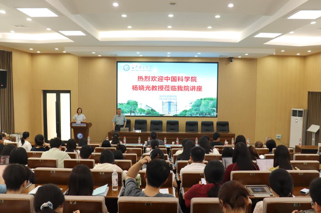 2025年5月30日下午,中国科学院数学与系统科学研究院杨晓光教授应邀在经管大楼100报告厅主讲金岭学术大讲堂第63期(2025年第17期),主讲题目为“从期刊的视角漫谈经管学科的研究”。校人文社科处处长刘坚、副院长尹筑嘉、学院教师及博、硕士研究生共120余人参加了本次讲座,讲座由尹筑嘉主持。