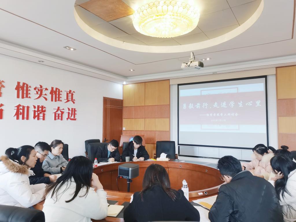 1月12日,经管学院在文科楼D506召开学期末学生工作研讨会。会议以“勇毅前行,走进学生心里”为主题,党委书记丁丹、副书记唐青、学工办全体辅导员参加,唐青主持。