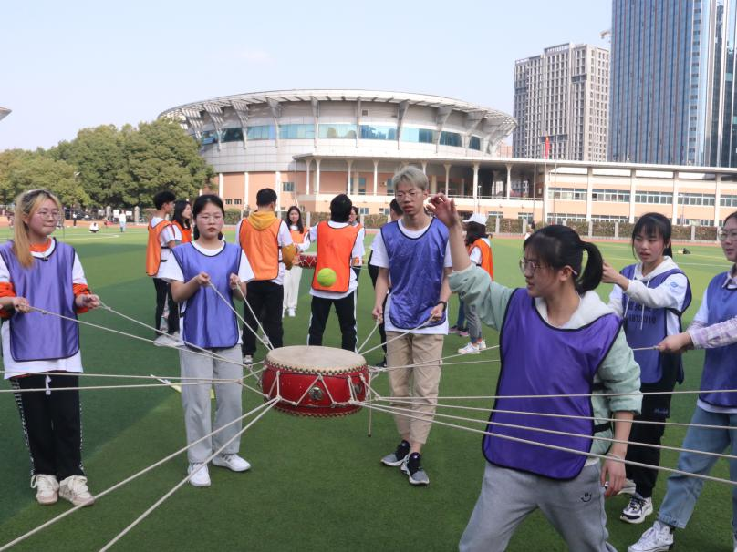 活动由破冰环节开始,为培养学生的集体观念和责任感,教练员将两个班分成了四个小队。通过团队文化展示环节,四个小队依次展示了队名、口号、队歌以及团队造型,加强了团队凝聚力。接下来的环节则考验团队的协作能力,需要每支队伍在最短的时间内完成四个小游戏:解手链、拍7令、扔水瓶以及“我们是最棒的”。比赛过程中,同学们互帮互助、互相鼓励,现场气氛高涨。随后进行的“鼓动人心”、“达芬奇密码”、“团队动力圈”等比赛,将活动推到高潮。