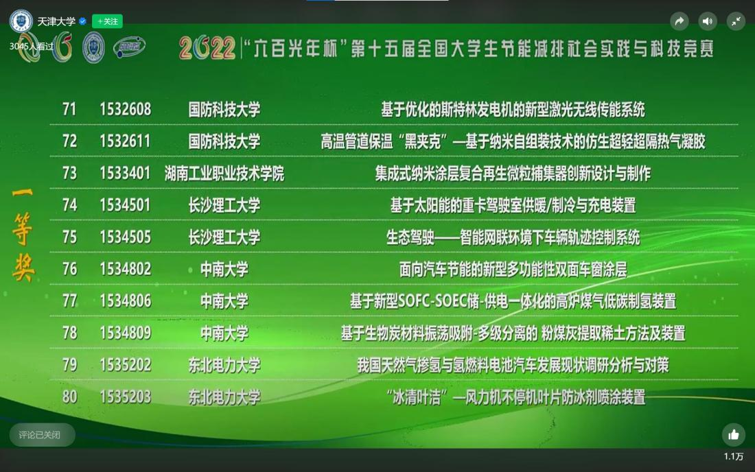 2022年8月3日至8月5日,“六百光年杯”第十五届全国大学生节能减排社会实践与科技竞赛决赛在天津大学举行。经过网评、会评和决赛答辩等阶段的层层选拔,威尼斯官网共获13个奖项,获奖数量刷新历史新高!