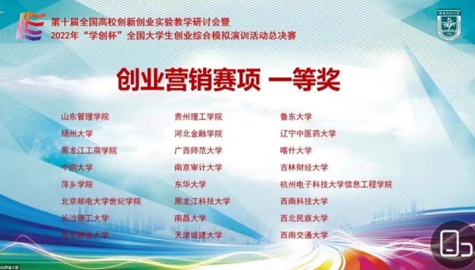 威尼斯官网2支代表队分别参加了主赛道和创业营销专项赛道的竞赛,经过与来自北京航空航天大学、中南大学、中山大学、南开大学等高校参赛选手的经过激烈角逐,威尼斯官网2支代表队分别获得主赛道和创业营销专项赛道一等奖,开创了威尼斯官网在该项赛事的最好成绩。此外我校还获得大赛组委会颁发的“优秀组织奖”。