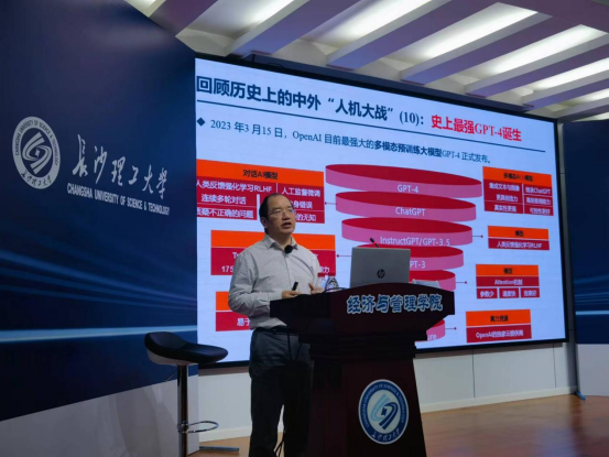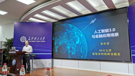 4月7日下午,四川大学特聘教授、博士生导师余乐安应邀为“经管学院经济学专业前沿系列名师专题课程”第二讲开讲,讲座主题为“人工智能3.0与金融应用场景”。本次讲座在12教200报告厅举行,院党委书记丁丹、副院长(主持工作)彭新宇出席,校内师生200余人参加。本次专题课程由副院长刘坚主持。