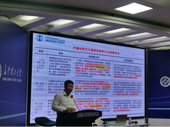 黄教授进一步指出,要推进高质量发展和中国式现代化,必须建立现代经济体系。这意味着要改革开放,优化经济结构,提高产业链的技术水平和附加值,同时还要注重环境保护和社会公平,实现经济、社会、环境的协调发展。此外,黄教授还强调了科技创新在中国式现代化中的关键作用,并对中国未来的经济发展前景进行了乐观预测。在场的200名本科生和经管学院教师听到黄教授充满深度的讲解,受益匪浅。学生们表示,黄教授的讲座让他们深刻理解了中国式现代化的内涵和前景,同时也激发了他们对未来中国经济发展的强烈兴趣和期待。