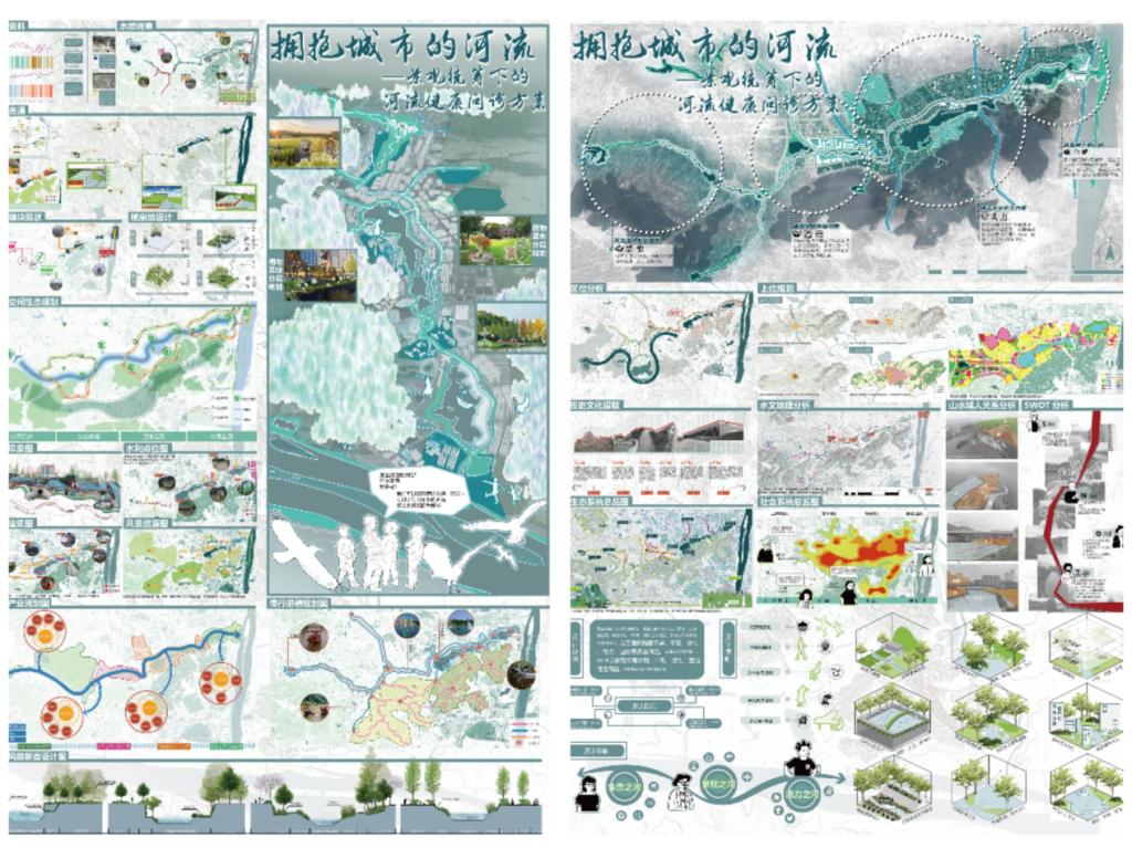 在全国总决赛的激烈角逐中,建筑学院的学子们凭借卓越的创意和扎实的专业技能,展现出非凡的风采,取得了令人瞩目的成绩。陈佩琪、邓依明同学在指导老师朱哲的精心指导下,其作品《远山 - 意湘西文化博物馆暨沈从文纪念馆设计》荣获二等奖,同时该作品在省级竞赛中荣获一等奖;黄皓、曹虎、邓紫暄同学在指导老师张颖的悉心指导下,作品《拥抱城市的河流》也荣获三等奖,且在省级竞赛中斩获一等奖。