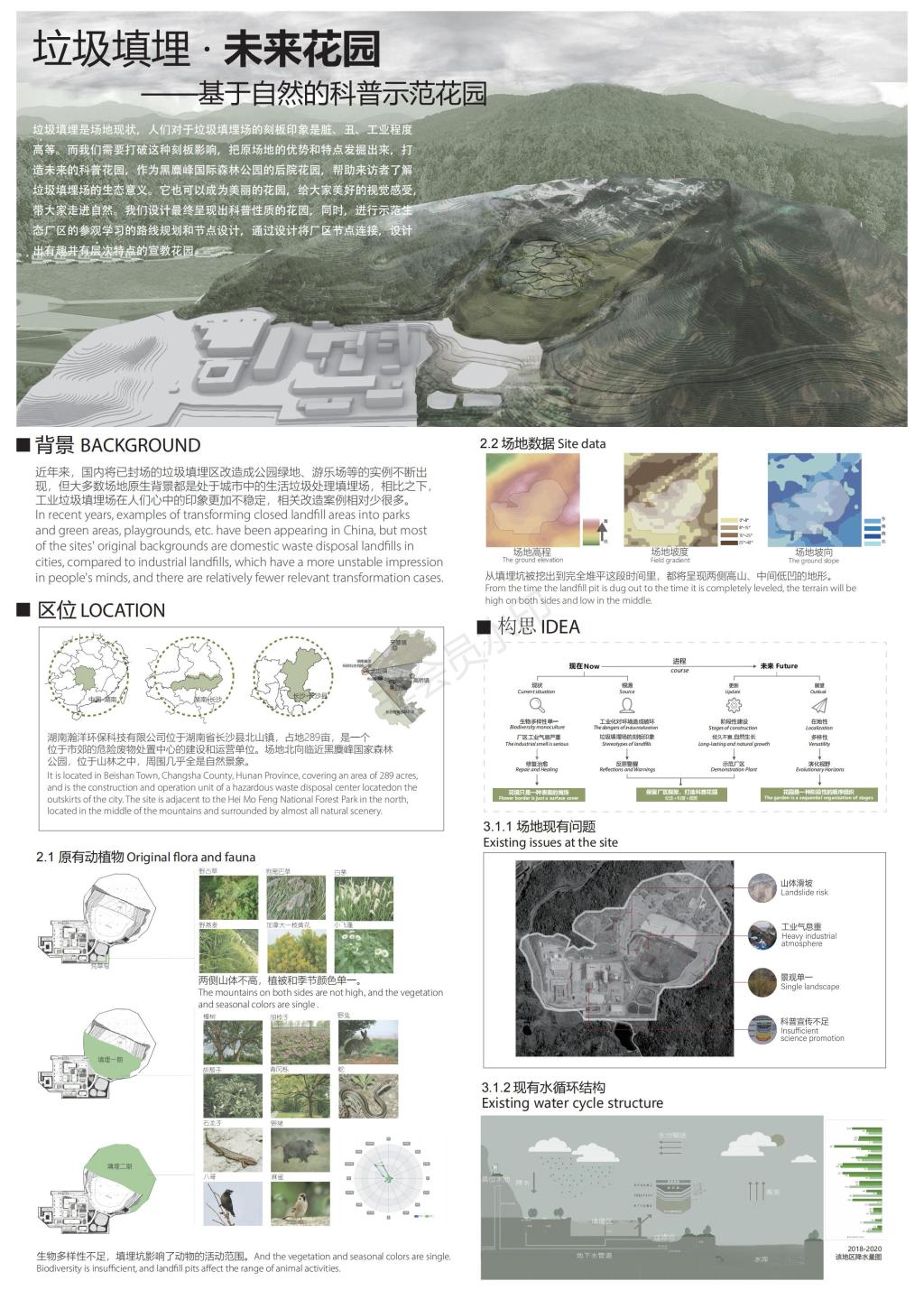 在周晨老师、熊辉老师、曹盼老师的联合指导下,我院风景园林系大二学生黄皓、罗佳钰与各高校研究生为主的竞赛团队同台竞技中,以“垃圾填埋,未来花园”为主题的设计作品荣获竞赛三等奖。此与此同时,方案被评为此次竞赛中最具特色的创意方案将与一等奖获得者的江苏大学团队组成后续深化成果设计团队,探索设计成果的落地实践。