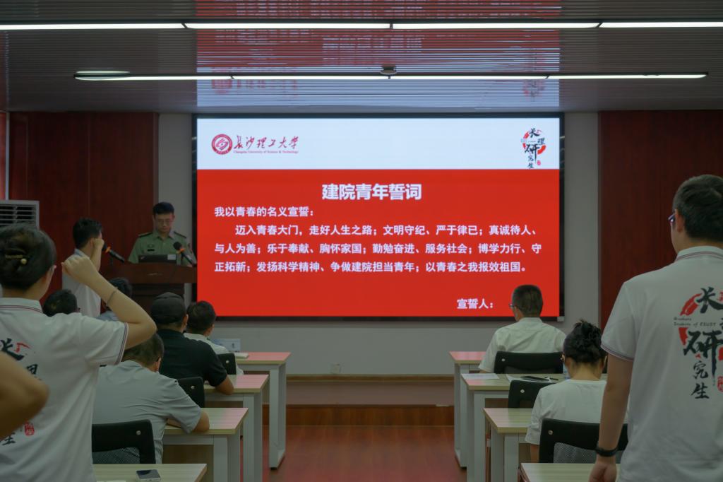 典礼上,全体新生起立,在张子凡的带领下庄严宣读了《建院青年(研究生)誓词》。铿锵有力的誓言表达了新生们立志学术、报效祖国的决心和信心。
