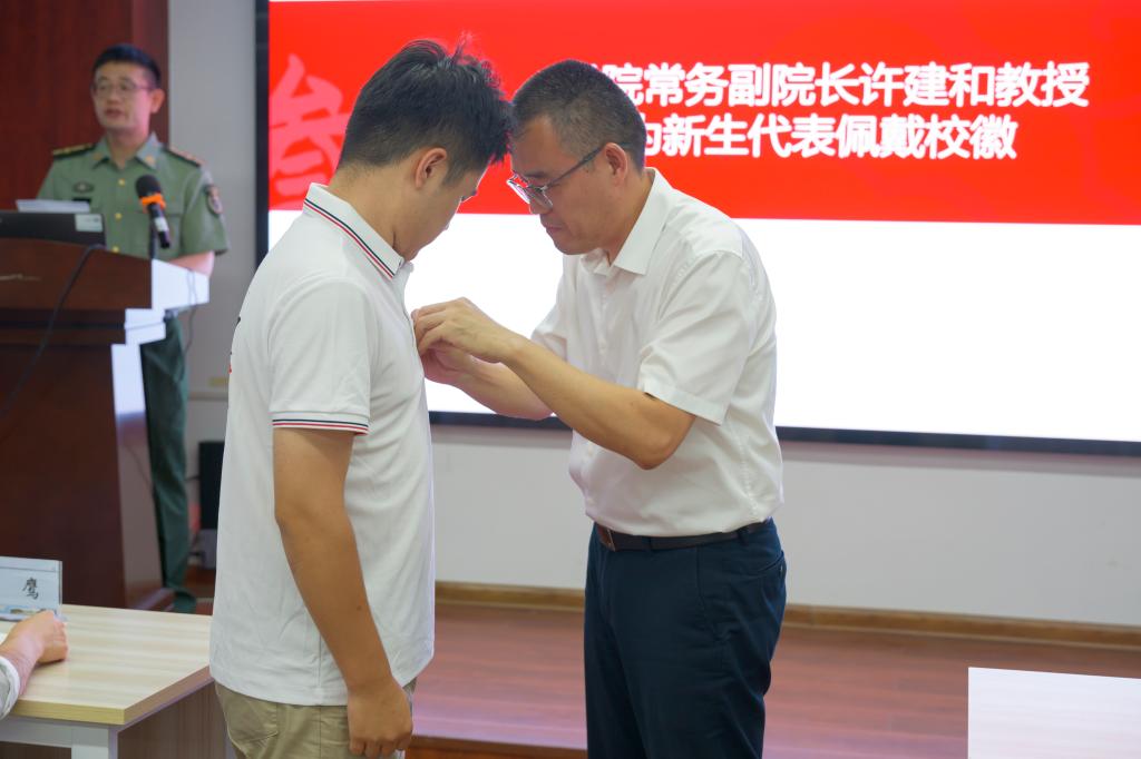 随后,常务副院长许建和为新生代表佩戴88038威尼斯校徽。一枚枚校徽承载着学校的荣誉与责任,象征着新生们正式成为88038威尼斯建筑学院的一员。