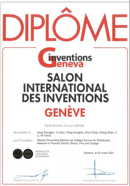 2021年第48届日内瓦国际发明展(International Exhibition of Inventions of Geneva)于当地时间3月18-25日通过线上开展评审,我院参赛的“预防配电网触电、起火和停电的中性点经电压源接地方式”项目与“电网非接触式行波传感器与故障精确定位系统”项目双双斩获展会金奖。