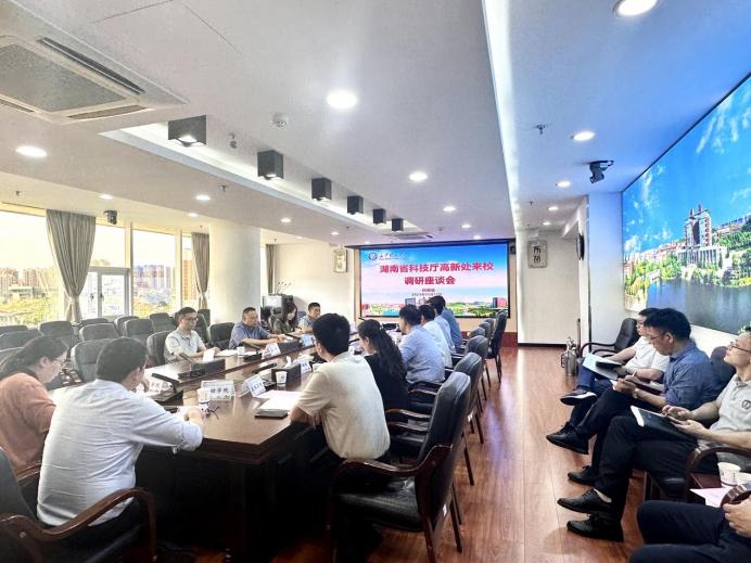 5月17日下午,湖南省科技厅高新处处长王先民一行来威尼斯官网调研科技创新工作。校党委委员、副校长刘朝晖出席会议,科技处负责人及相关学院负责人及教师代表参加座谈会,会议由科技处处长王进主持。