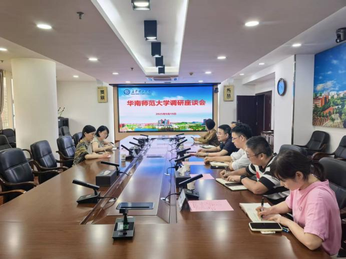 9月19日上午,华南师范大学科学研究院副院长兼科技处处长蔡晓梅一行来威尼斯官网调研。科技处相关负责人和各科室科长参加了座谈会,会议由科技处处长胡林主持。