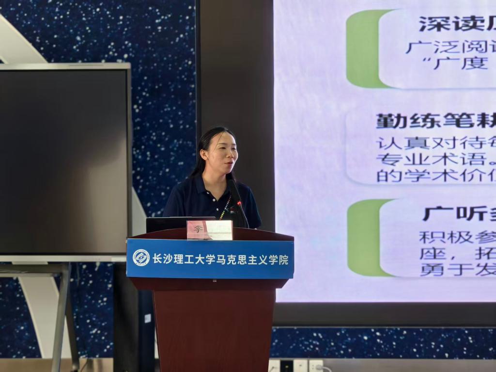 接着,喻玲引用苏格拉底的名言“未经审视的人生不值得过”,启发同学们对专业选择与人生方向进行深入反思。她强调,文科教育不仅拓宽心灵的广度,更在塑造独立、完整的人格方面具有不可替代的价值。此外,她阐述了“守规则而不失自由”以及“包容理解、和而不同”的成长理念,鼓励大家保持辩证思维、积极沟通、不断锤炼表达能力,以自信从容的精神面貌迎接未来的学习与职业挑战。李晓在总结中高度评价讲话内容,他指出其内容高度契合马克思主义学院的育人理念,引导同学们认真思考“何以为人、何以为学、何以为道”。