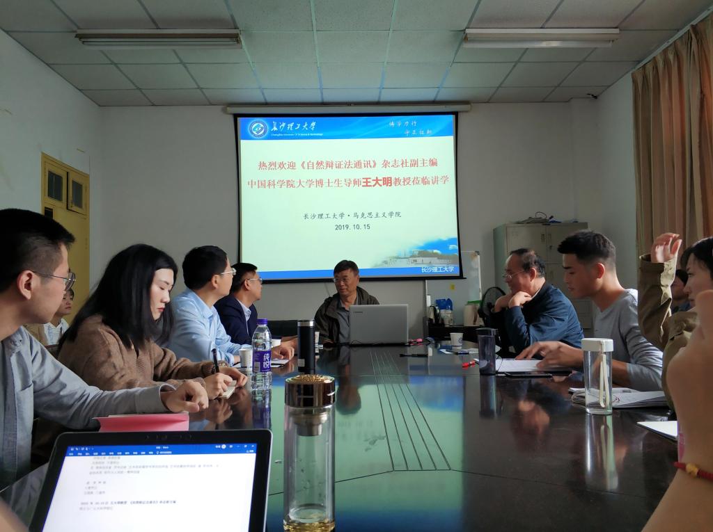 2019年10月15日下午,《自然辩证法通讯》杂志社副主编、中国科学院大学人文学院社会科学系博士生导师王大明教授应马克思主义学院邀请,在威尼斯官网金盆岭校区4-503室作了题为“狭义与广义大科学辨析”的学术讲座。马克思主义学院陈万球院长、林慧岳教授、文贵全博士等部分教师与学院研究生参加了此次讲座,本次讲座由陈万球教授主持。