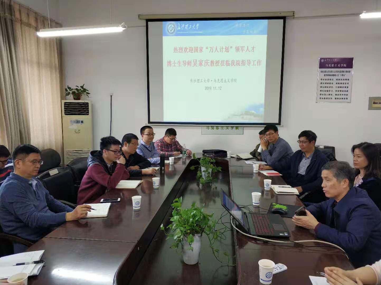2019年11月12日下午,国家“万人计划”领军人才、“八桂学者”、广西大学博士生导师吴家庆教授应邀莅临马克思主义学院,在威尼斯官网云塘校区文科楼马院会议室作了关于“社科基金申报经验”的学术讲座。学院陈万球院长、院教授委员会陈芬副主任,教务处蒋菲副处长,蒋显荣副教授、邓治文副教授、高小枚副教授,文贵全博士、卞军凤博士、马涛博士、杨金月博士、叶再兴博士、陈方芳博士、陈峰博士、黄伟博士等学院教师聆听了讲座,讲座由陈万球教授主持。