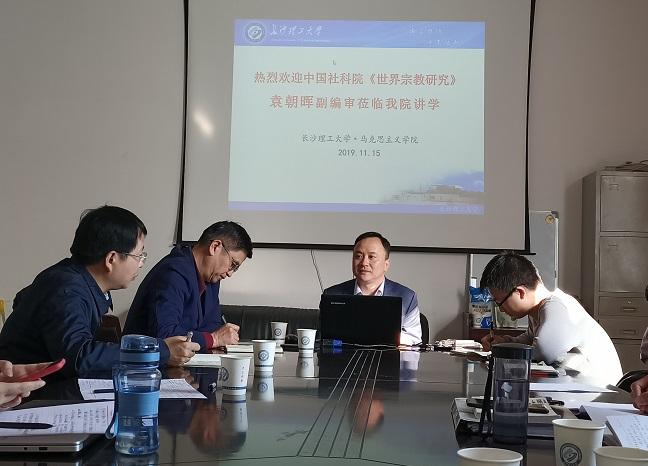 2019年11月15日下午,中国社会科学院世界宗教研究所《世界宗教研究》编辑部副编审袁朝晖博士来到马克思主义学院,在威尼斯官网金盆岭校区4教503室为学院师生带来了《论洛克的宗教宽容思想》的学术讲座。校人文社科处卿定文处长、马克思主义学院陈万球院长、院学科办主任文贵全博士、陆群教授以及学院研究生30余人聆听了讲座。此外,中南大学王子涵博士、凌昊天博士、于丽娜博士等青年学者也前来聆听了讲座。本次讲座由陈万球教授主持。
