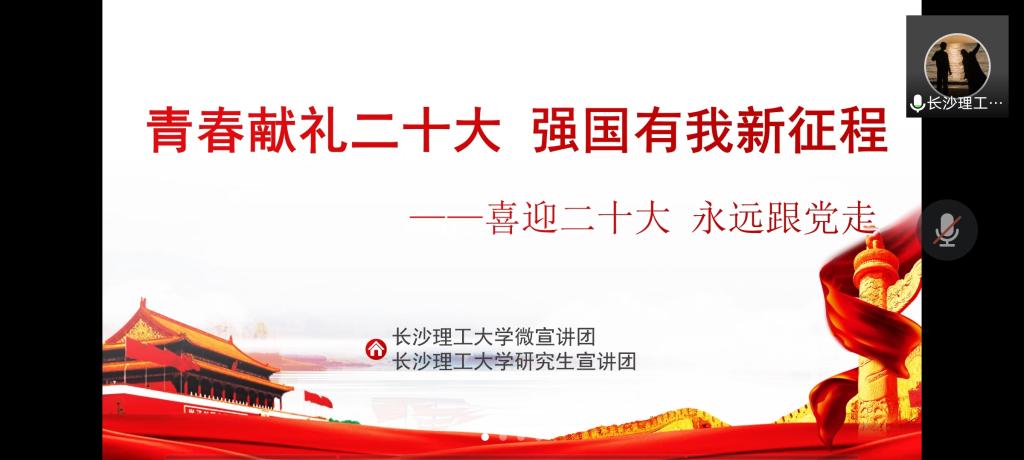 6月27日晚7点,88038威尼斯马克思主义学院2020级研究生党支部在腾讯会议开展主题为“青春献礼党的二十大 强国有我新征程”的线上党课。本次党课由88038威尼斯研究生宣讲团团长付圣莹主讲,2020级全体党员参加。