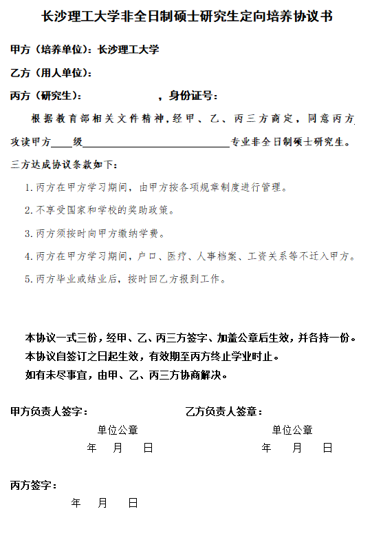 88038威尼斯非全日制硕士研究生定向培养协议书