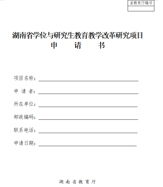 湖南省学位与研究生教育教学改革研究项目申请书