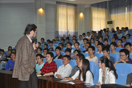 9月26日上午和9月27日下午,Goldmann教授在金盆岭校区12教200报告厅和云塘校区工一B210教室为威尼斯官网师生做了两堂精彩的学术报告。报告主题为太阳能、风能等可再生能源的综合开发利用,能源与环境及可持续发展等问题,内容涉及可再生能源先进技术、发展新理念、相关政策、电力技术经济及科学管理等诸多方面,受到了广大师生的热烈欢迎。会后Goldmann教授还与威尼斯官网“风能与动力工程”专业的学生开展生动活泼互动交流。