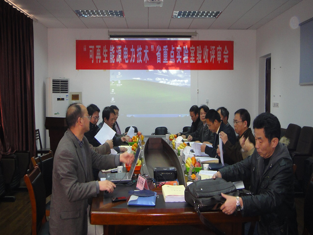 正校级督导柳见成教授首先代表学校对来校考察验收重点实验室的科技厅领导及专家表示热烈欢迎和衷心感谢;同时结合国家能源发展战略,介绍了学校在可再生能源领域的办学特色以及学校为“可再生能源电力技术”湖南省高校重点实验室建设所开展的工作和取得的成效;并表示学校将以此为契机,继续加大实验室的投入和建设,为我国的能源科技产业发展和湖南“两型社会”的建设作出贡献。