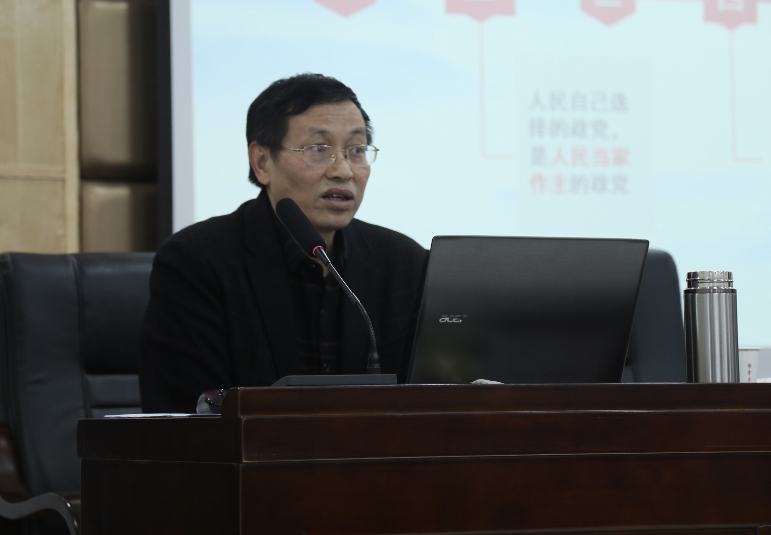 11月20日下午,能动学院与水利学院于新能源大楼二栋502教室共同举行第三十二期积极分子培训班第二课,由能动学院专职组织员王汉华为全体学员授课。