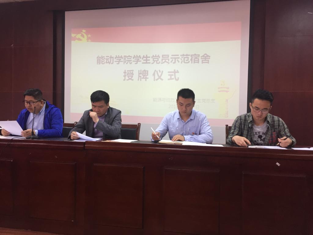 4月17号下午,能动学院在工一A428举行了党员示范宿舍授牌仪式,院党委副书记杨雪峰、院学工办主任李小军、学生党总支各部门委员、全体学生党员参加会议,会议由学生党总支副书记刘泽良主持。