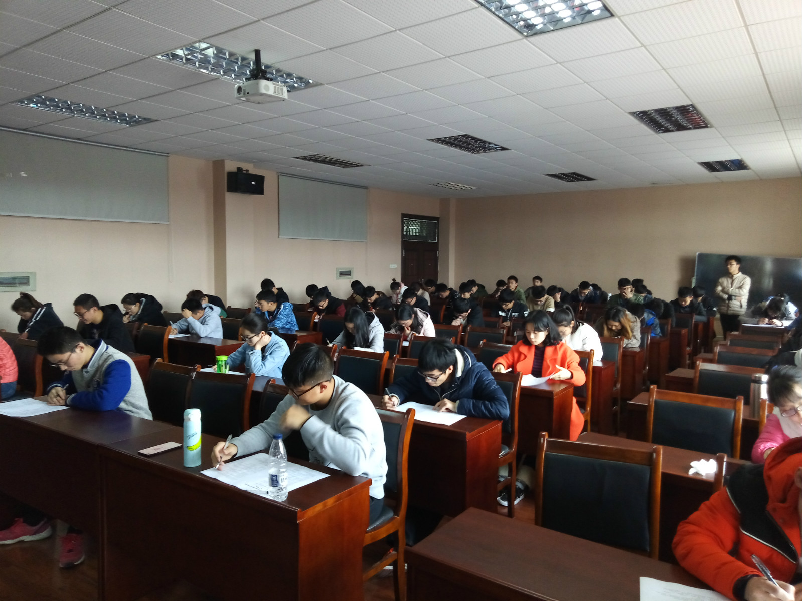 开考前,考试负责人首先就考试细则、考试办法、考场纪律等进行了强调说明,参考人员都认真听取了相关内容,并承诺严格遵守考场纪律。此次考试采取闭卷形式,题型为单选题、多选题以及判断题,考试内容以校党委组织部下发的《党的知识七百问》为基础,重点考核同学们对党的相关知识以及十九大的基本理论的掌握情况。考试开始后,大家认真专注于答题,顺利完成各类考试题目,展现了能动学子积极向党组织靠拢的决心以及良好的考试风貌。考试结束,考生们有序交卷并离开考场。后期,学院将组织学生党员认真批改试卷并做好成绩登记,根据考试成绩,末位淘汰制选拔出本期学员,并要求这部分同学要进一步加深对党的认识。