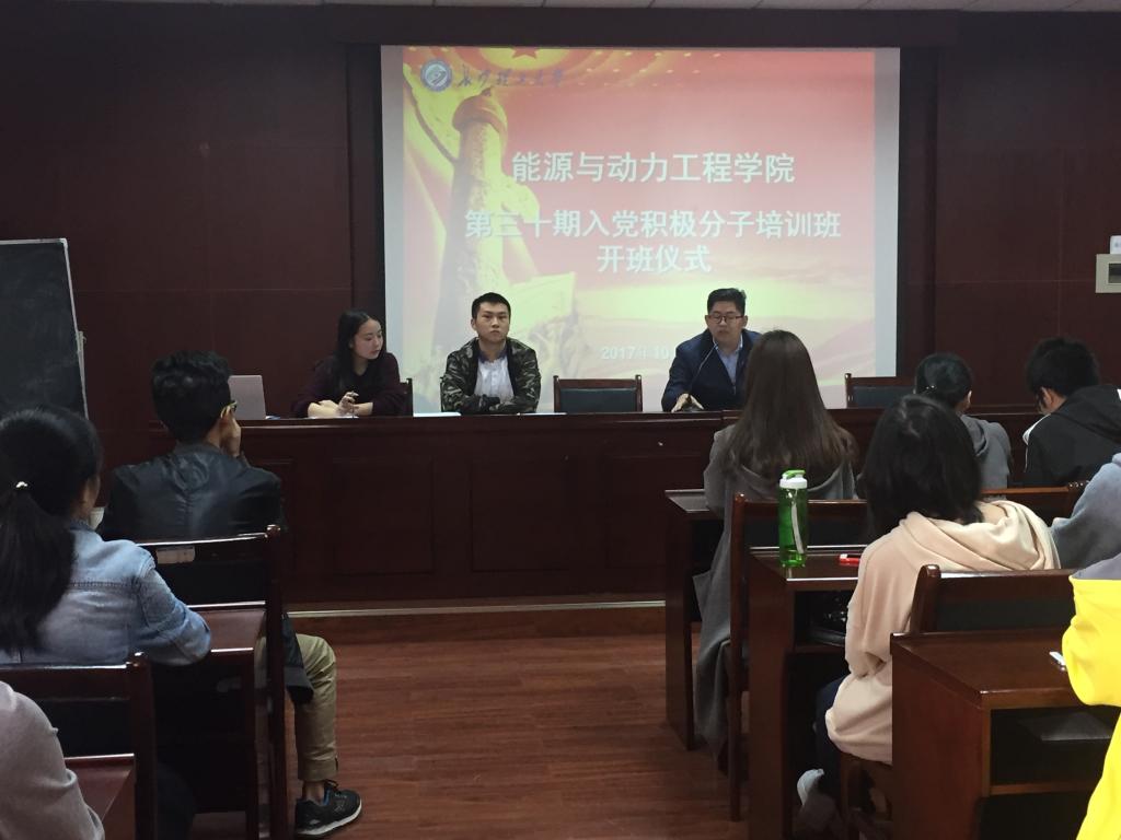 10月25日上午,能动学院第30期入党积极分子培训班开班仪式在工一A428会议室顺利举行,党建辅导员李小军老师,部分学生党总支委员及第30期全体入党积极分子参加开班仪式,活动由学生党总支副书记刘泽良同志主持。