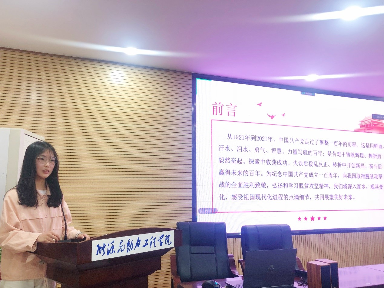 本次分享会的主题为“观家园大变化,感现代化进程”,第十四期发展对象以小组为单位,组内选出上台分享人员,他们围绕自己家乡近些年来的发展变化,展开本次的交流分享。首先分享的是来自第一小组的雷财沛。他的家乡广西的全国政协委员韦震玲曾描述说:“那时的我曾经以为家乡永远也无法与外界相连,除非奇迹发生”。雷财沛说自从脱贫攻坚以来广西发生了巨变,现在的广西驱车直达家门,灯火明亮,桑树成林,稻香阵阵。来自云南的赵晨杰说蒙自是一个拥有深厚红色文化底蕴的小城,中共云南第一次全国代表大会就曾在此召开,蒙自同时也是小东山暴动地、小东山村革命根据地。赵晨杰提到在脱贫攻坚的过程中,蒙自市通过荣誉积分换取礼品这种创新形式,改变人们的生活习惯,巩固脱贫攻坚的成果。来自湖南益阳的胡寒指出,他的家乡能一步步建设到如此繁华的景象,靠的不仅仅是人民的努力,更加得益于我国现代化建设,是我党带领人民一步步走向富强和幸福。马芹说浏阳是一个钟灵毓秀、山水相依、英雄辈出、人文荟萃的地方,浏阳烟花销往全国乃至世界各地。彭傲和大家分享双峰近些年来的变化,他强调说双峰的发展正是应验了那句“要想富先修路”,他也相信双峰会在党和国家的关心下发展的越来越好。第七小组的罗科千向大家展示了湘潭新时代的变化,他说在从计划经济到市场经济,从基本温饱到全民小康,从站起来,富起来再到强起来的伟大历程中,湘潭人民创造了一个又一个建设奇迹。凭借“恰得苦、舍得死、霸得蛮”的湘潭精神,一批批湘潭人用苦干实干,让“家”在一百年中换了人间。梁超同样提到“要想富先修路”,此外他还强调我党在脱贫攻坚中不会落下一个人。张圆指出抓住科技核心力量,腰杆子就是硬的。她还说一代人有一代人的使命,要肩负起使命,有了一百年的辉煌,也会有将来几百年的辉煌。危洋岳看到了望城区在发展的过程中真抓的实劲、敢抓的勇劲。他说十几年前他是在望城成长的一个小孩,十几年后看望城像一个孩子在党的关照下成长。